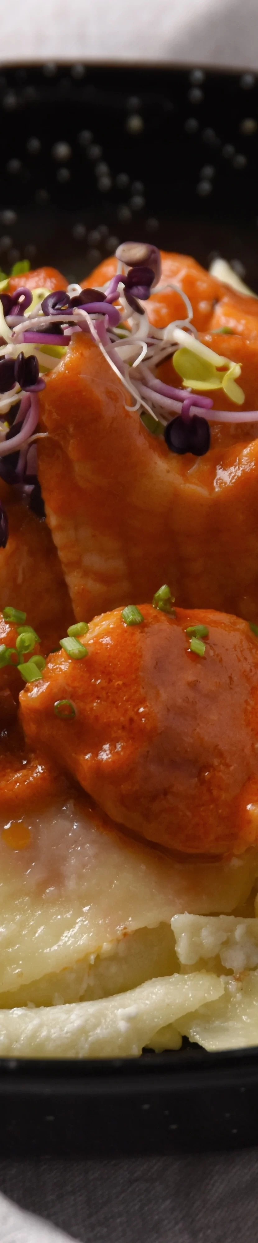 With parsleyed potatoes and tartare sauce.