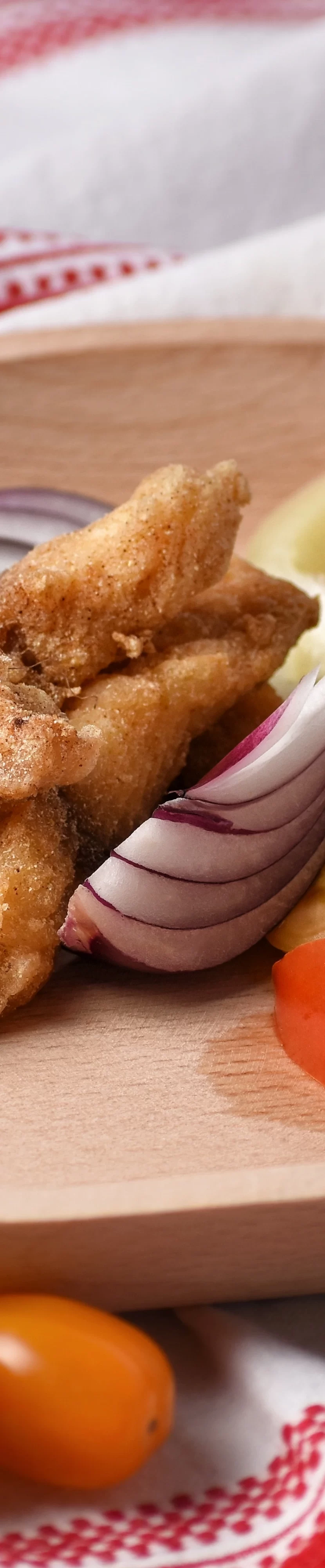Made from catfish fillet served with fresh vegetables and fresh soft bread. (1, 4,)