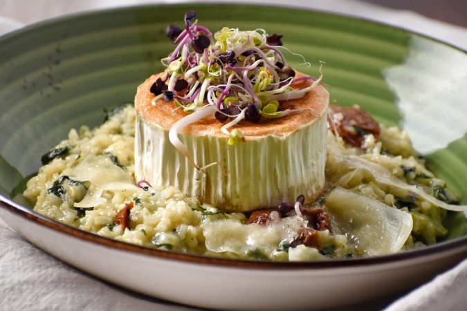 $5790A pikáns, grillezett kecskesajtot krémes rizottóval egészítjük ki. (7, 9)